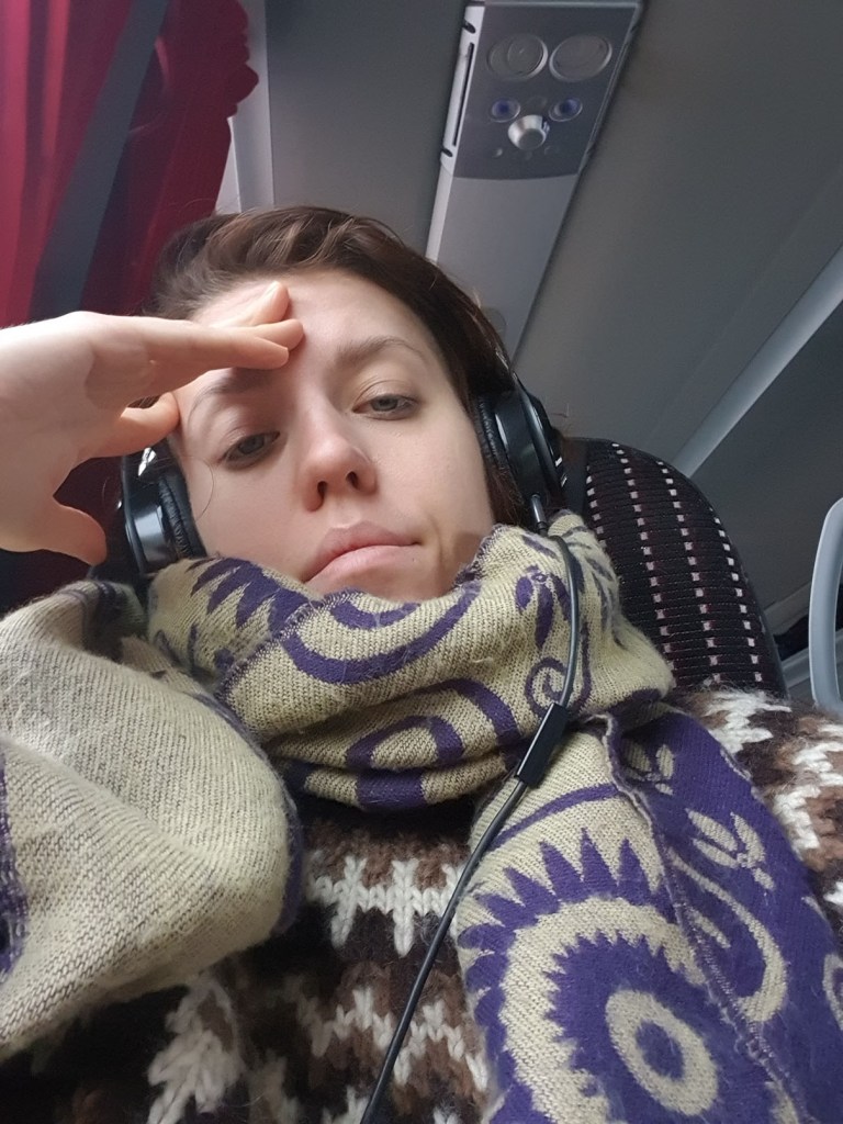 I managed to get myself on the bus, and thankfully the seat next to mine was empty so I could collapse the meatbag onto it. I had really been looking forward to seeing the flat Latvian and Lithuanian landscapes pass by in the grey January light. Now all I could do was to keep my eyes closed and take deep breaths and not throw up. I managed. I held on. Somewhere in the midst of this suffering and the back and forth between sleep and wakefulness on the bus I went to this existential place. I always do, especially when there’s vomiting involved. I had covered my face and the lights were low and it was dark outside, and I cried quietly, I mean I ugly-cried like a baby but sneakily, over just how perfect it all was. Yes. How the whole organism is fighting to purge this poison and to heal, like that is the only choice there is without ever asking. It is resisting change, yet changing everything to allow that resistance. I thought of my parents and the grief over my fucked up childhood and I cried great tears of joy and I thought: “it was perfect!” I thought of my most recent heartbreak and all the pain in that, and I thought “thank god!” Not because of the “all of that led me here”-bullcrap, which is of course also true, but just because I get to be here. Alive. The time I have here as an organism is so fucking short. But I get to have this, right now. And isn’t that something! And so I cried and I smiled and I was in pain and I went back to sleep, woke up and cried again, changed positions and slept. All the way to Vilnius.