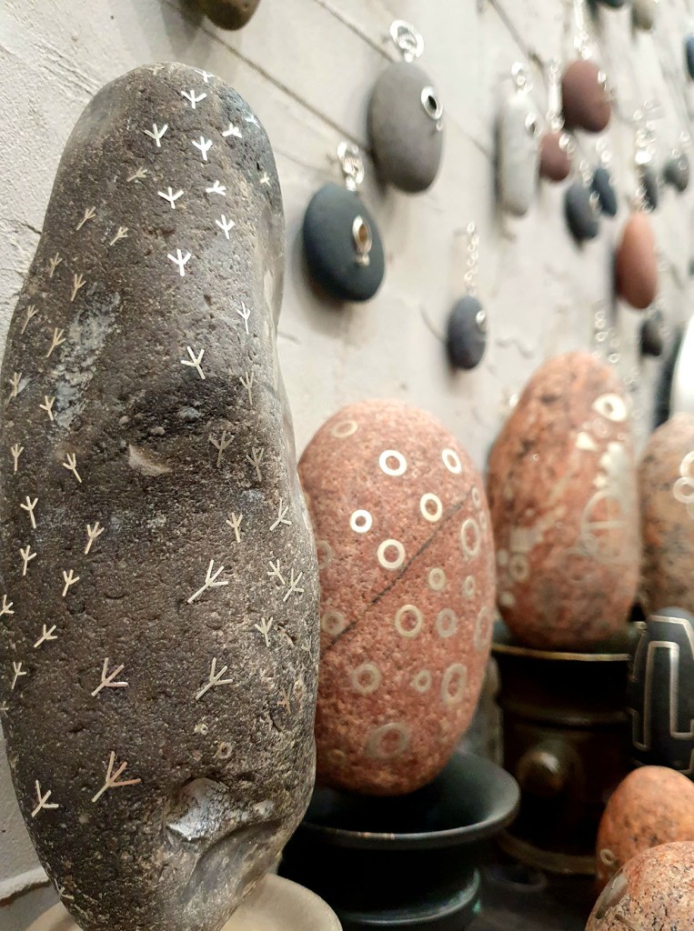 I felt lifted and I bought one of the pebble earrings to take with me. A tiny, brown one found by the artist. Just like I also enjoy it when I spot an especially good-looking stone and slip it into my pocket while out wandering, to keep for a while.