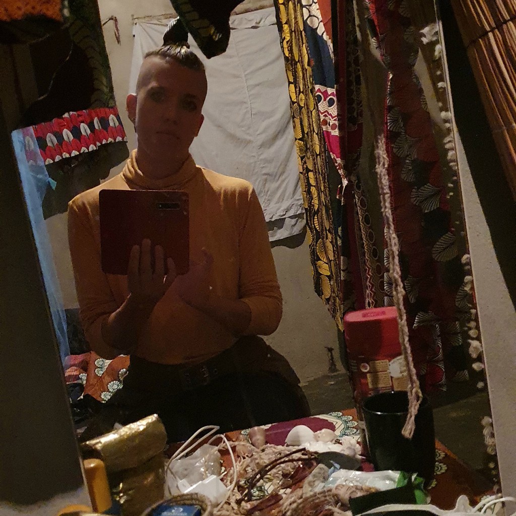 I come here when I need any of my stuff or if I want to get ready to go out. I like to put on some music while I try combinations of my 10:ish pieces of clothing and croutch on the bed in front of the mirror while shining the light of my phone into my face to see where to put the mascara. I never quite know how my make up turns out in this light, but it’s OK.