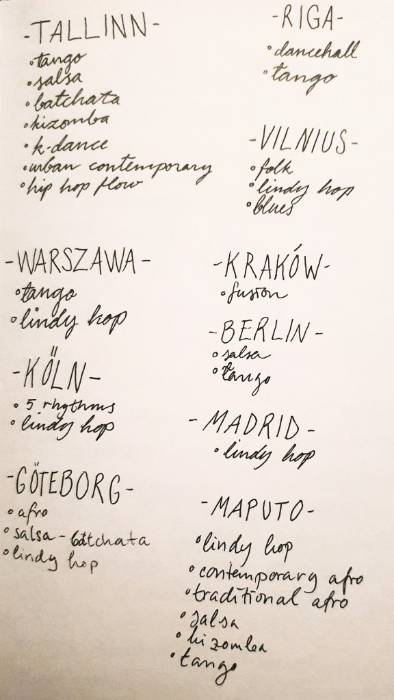 This is my dance map since December: this is where I’ve been and what I’ve danced.