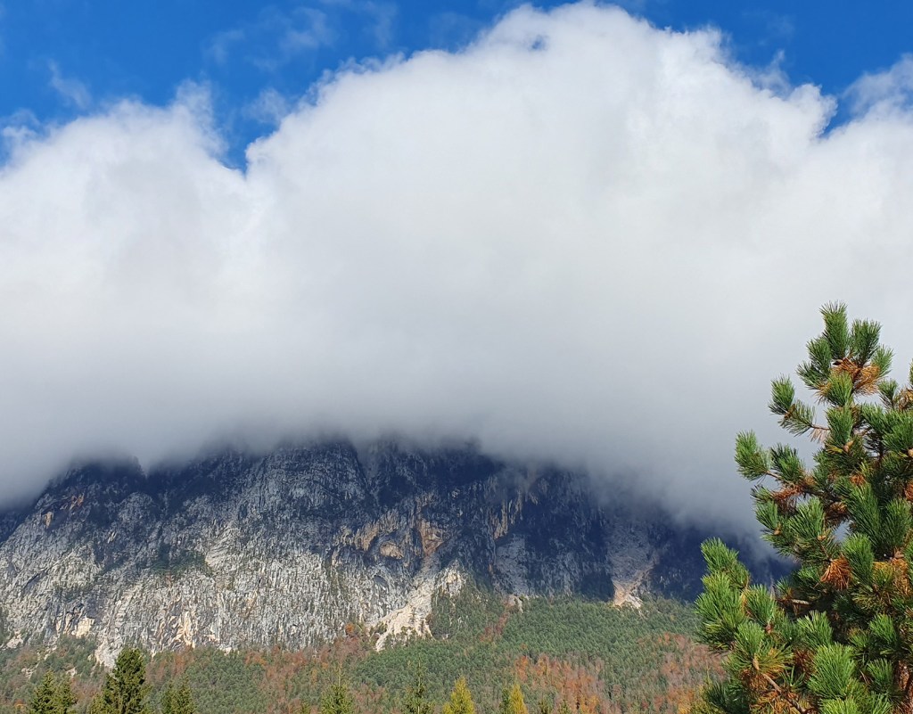 It takes me about an hour to walk. I cross the river again, a different bridge over the furious water overflowing to the trees on the riverbanks. I imagine it’s all the rain from the mountains. The road goes steeply uphill and I walk slowly. I meet only a woman and we say good morning. Otherwise the roads are empty. As I ascend I see Villach below me, still sleeping, and the mountains behind it, herding their clouds. It is beautiful and now, moving and warmer, I find it all right, even though my feet are still wet. Still, I am determined to get out of here.
