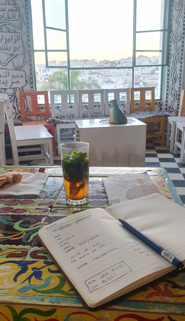 The sun sliding across the sky, construction noises from outside, night lights from the city in the distance.