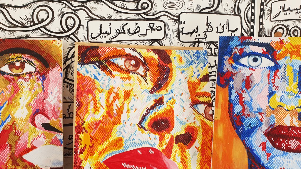 “Oh I want to do it with an audience and journalists present,” he says. Then I think I can see it, his vision: a big bonfire, Said throwing the beautiful canvases into the fire, the faces going up in flames, colors melting. It would be like a performance; I see the power of his vision.