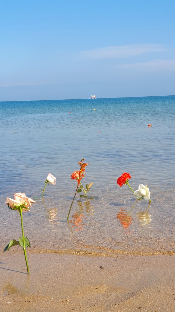 We meet with more friends and family and together we put flowers in the ocean for the ones not returning from it. Afterwards we stray a little from the group, or steps inching sideways together as in silent agreement.