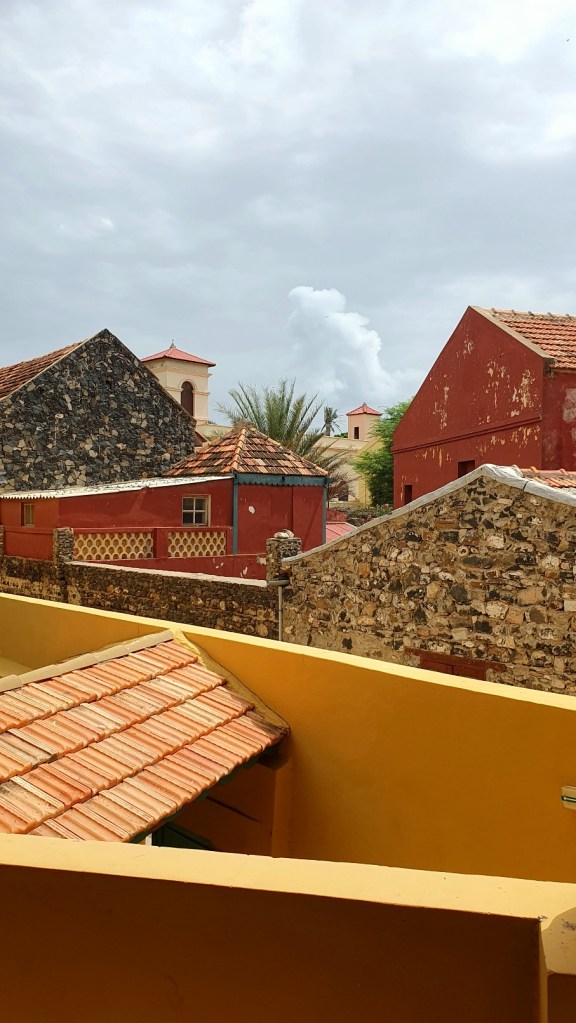People live on Gorée Island now. They take the ferry to commute to work and water the flowers. They bring out chairs and sit with their neighbors on the streets, swim in the sea, chat and play checkers. They leave their doors and windows open.