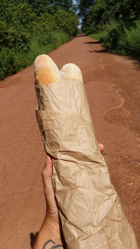 I get through the intrusive and loud demands for my attention and am rewarded with two lengths of hot bread for the road.